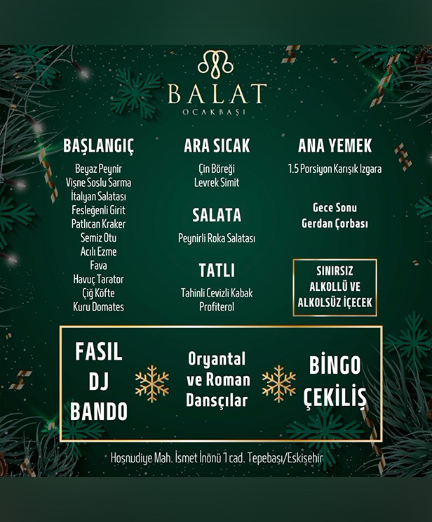 Balat Ocakbaşı Eskişehir Yılbaşı 2024 Menüsü