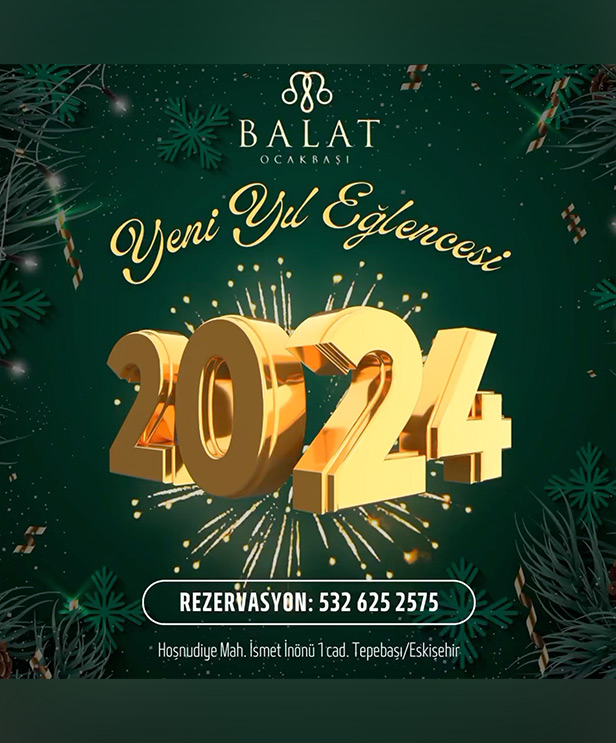 Balat Ocakbaşı Eskişehir, lezzetli yemekleri, eğlenceli programı ve sürprizleriyle 2024 yılbaşını unutulmaz kılmak için herkesi bekliyor. Bu özel gecede yerinizi ayırtın ve Balat Ocakbaşı’nın eşsiz atmosferinde yeni yıla coşkuyla merhaba deyin!