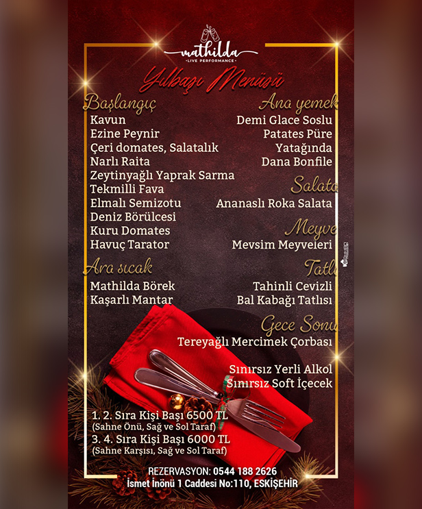 Mathilda Eskişehir Yılbaşı 2026 Menüsü
