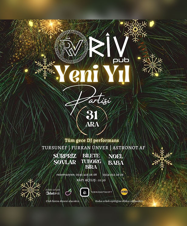 Bu eğlenceli geceyi kaçırmamak için şimdiden yerinizi ayırtın ve Riv Pub’un 2024 Yılbaşı Partisi’nde yılın son anlarını dolu dolu yaşayın!